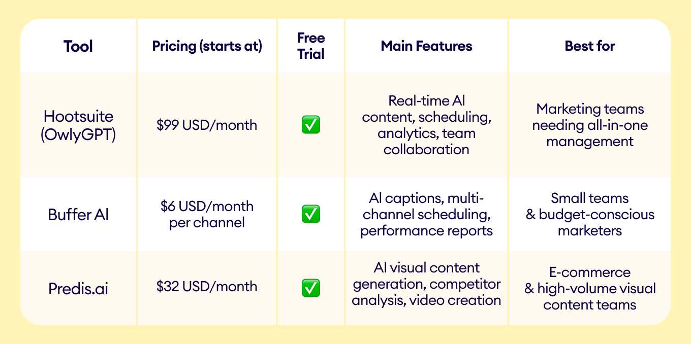 💡 Tip: If your social media strategy relies heavily on customer interaction and social listening, go with Sprout Social. If you need fast, brand-consistent content at scale, Hootsuite or Predis.ai will serve you better. Buffer is the smart choice when simplicity and cost are the priority.