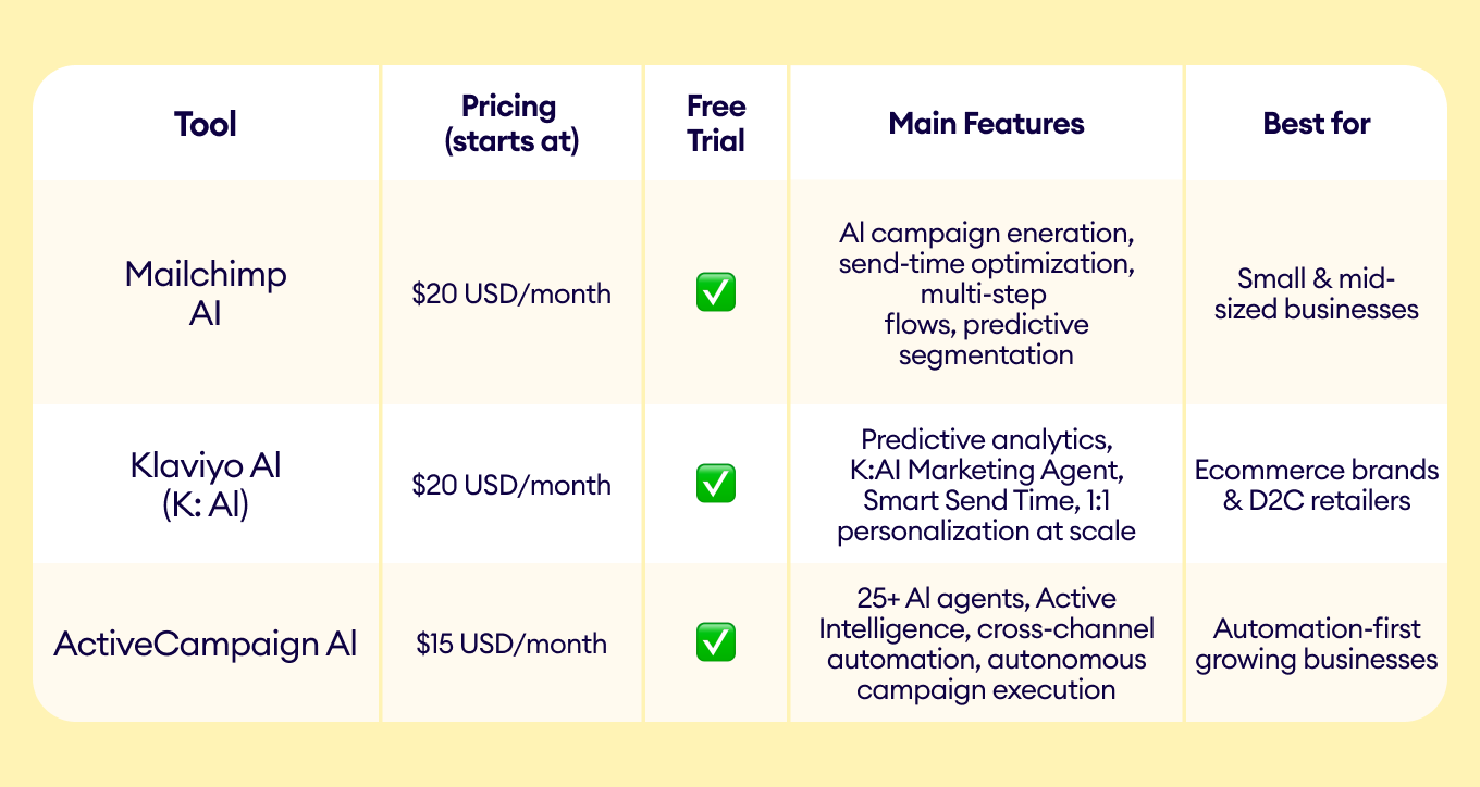 Email remains one of the highest-ROI channels in digital marketing, and AI has made it significantly more powerful. The best AI email marketing tools go well beyond scheduling sends; they write your copy, predict the right moment to reach each subscriber, automatically segment your audience, and keep optimizing performance based on real behavioral data. Here are the top platforms doing this in 2026.
