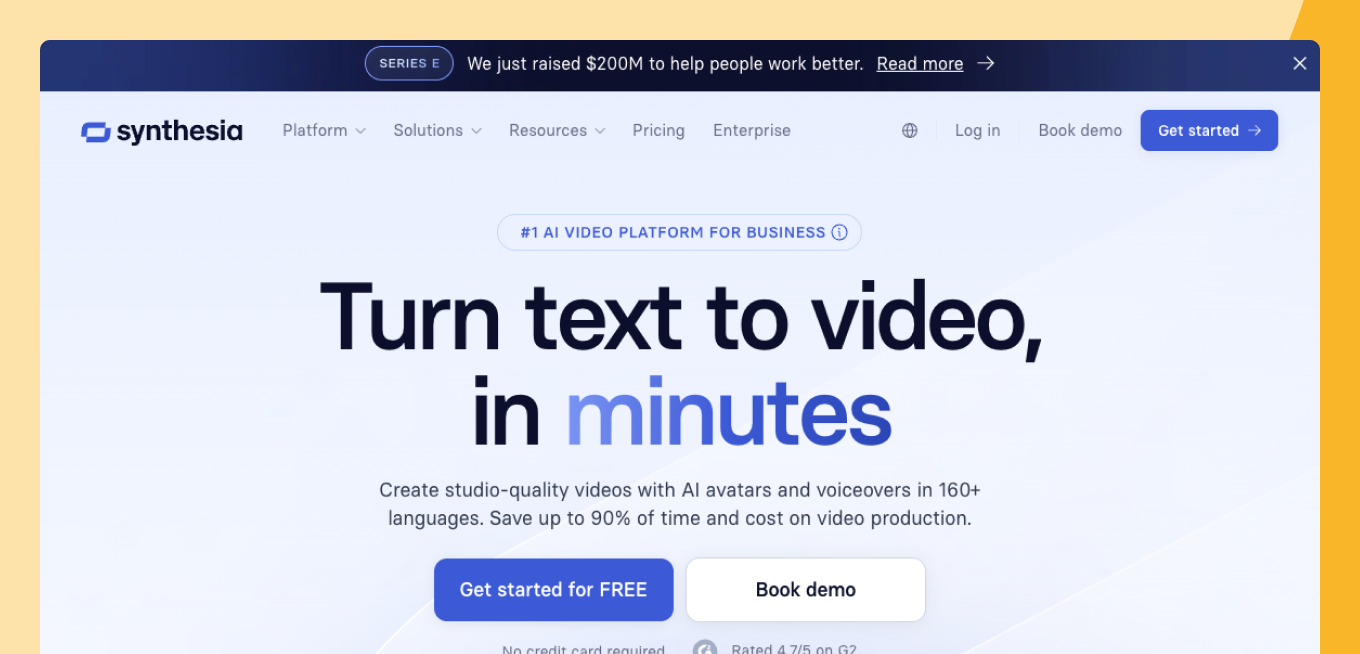 Synthesia is an AI video platform that allows teams to create videos using AI avatars and voiceovers in over 160 languages, without requiring cameras, actors, or editing experience. It is used across marketing, HR, and enterprise contexts for producing video content at scale.