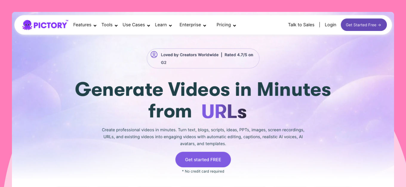 Pictory is built for teams sitting on libraries of written content, from blog posts to scripts and webinars, that never quite made it into video. It converts that content into short-form videos automatically, with no video editing experience required. If you have already done the hard work of creating the content, Pictory helps you get a lot more mileage out of it.