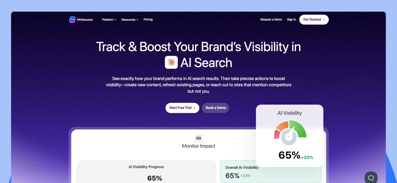 Writesonic is a content generation platform focused on SEO-friendly and performance-driven content. It helps marketers create blog articles, landing pages, and ads optimized for both search engines and conversions, making it a strong choice for growth-focused digital marketing teams.