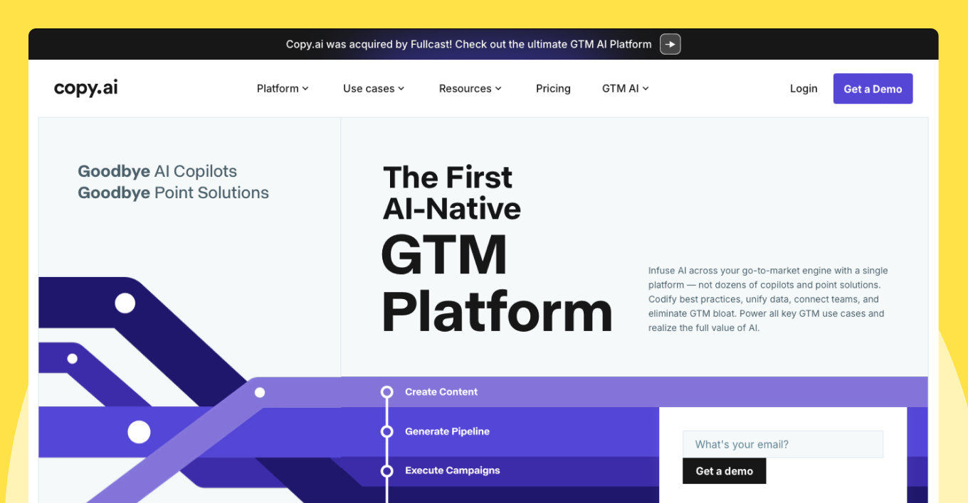 Copy.ai is a writing automation platform aimed at sales and marketing teams. It covers short-form content such as email sequences, social posts, product descriptions, and outbound copy, with a focus on speed and output volume.