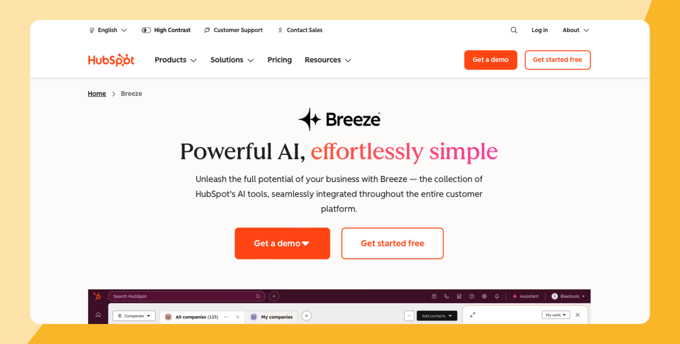 HubSpot Breeze AI enhances CRM workflows with automation and AI-driven insights, mainly supporting outreach and deal management.