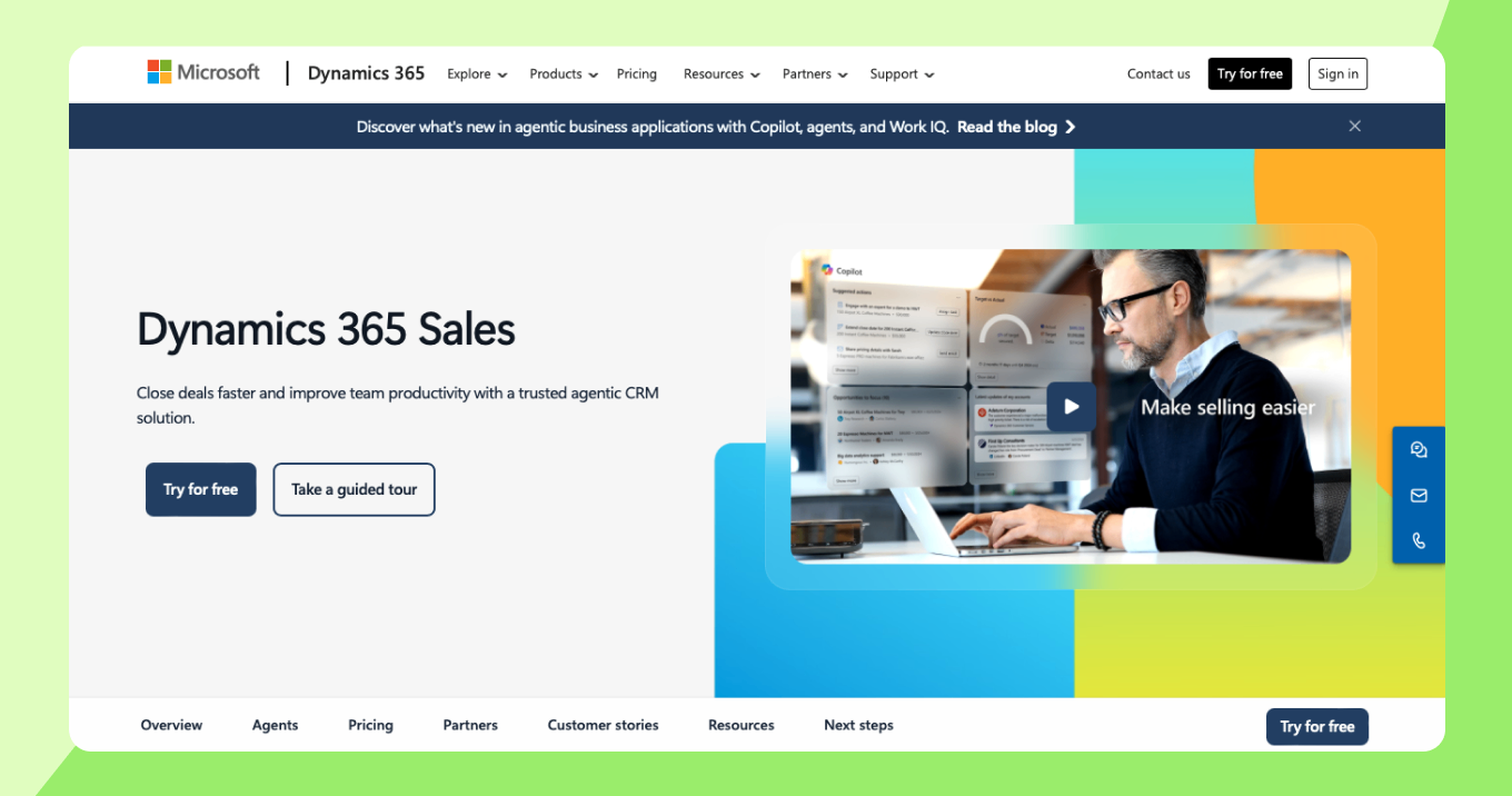 Microsoft Dynamics 365 Sales leverages Copilot to embed AI across sales, marketing, and service workflows.