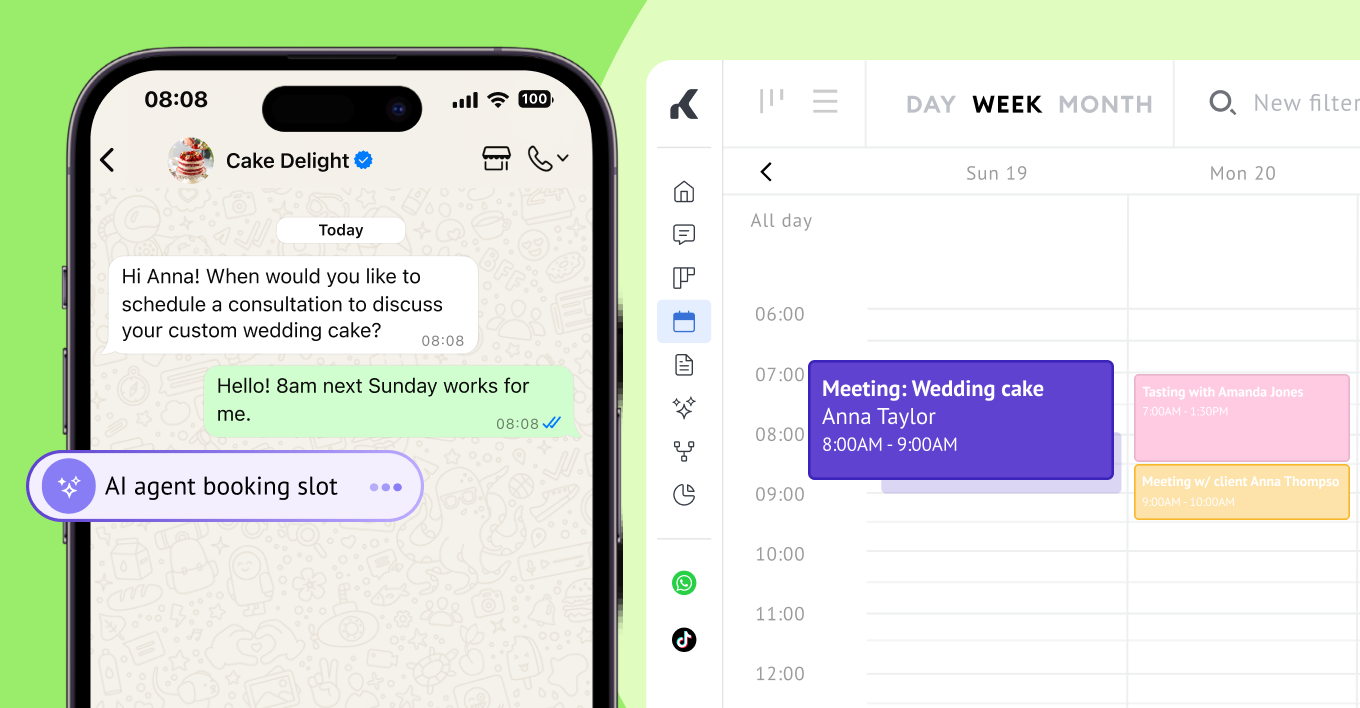 If a potential customer wants to schedule a meeting, Kommo AI agent can also find an open slot in the calendar and book it on the spot, making the Kommo AI agent one of the few AI sales agents capable of handling the entire customer journey, from the first message to closing the deal.