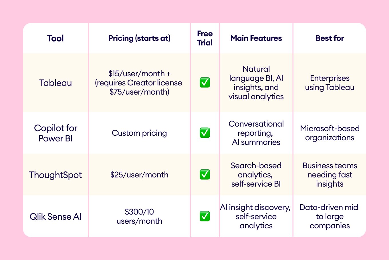 Microsoft Copilot for Power BI integrates AI directly into Microsoft’s analytics ecosystem.
