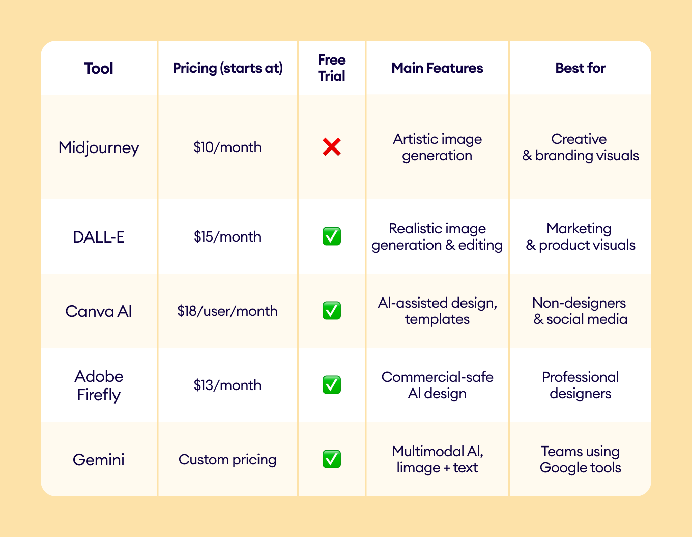 Comparison table: AI tools for image & graphic creation