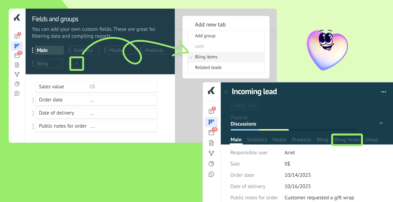 Create orders by setting up a Bling pipeline trigger in Kommo.