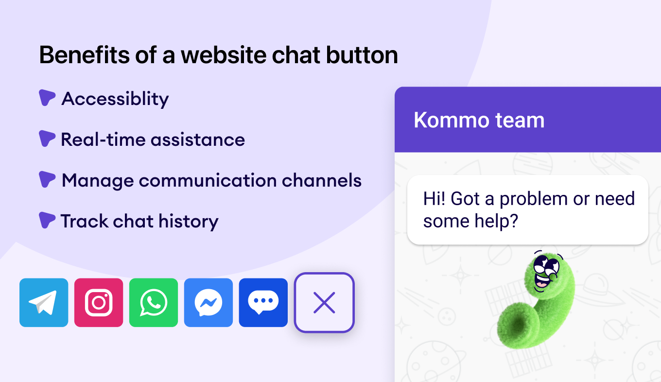 Integrate Facebook Messenger directly into your website using Kommo's website chat button. This feature allows visitors to initiate conversations with your team without leaving your site, enhancing user experience and lead capture.