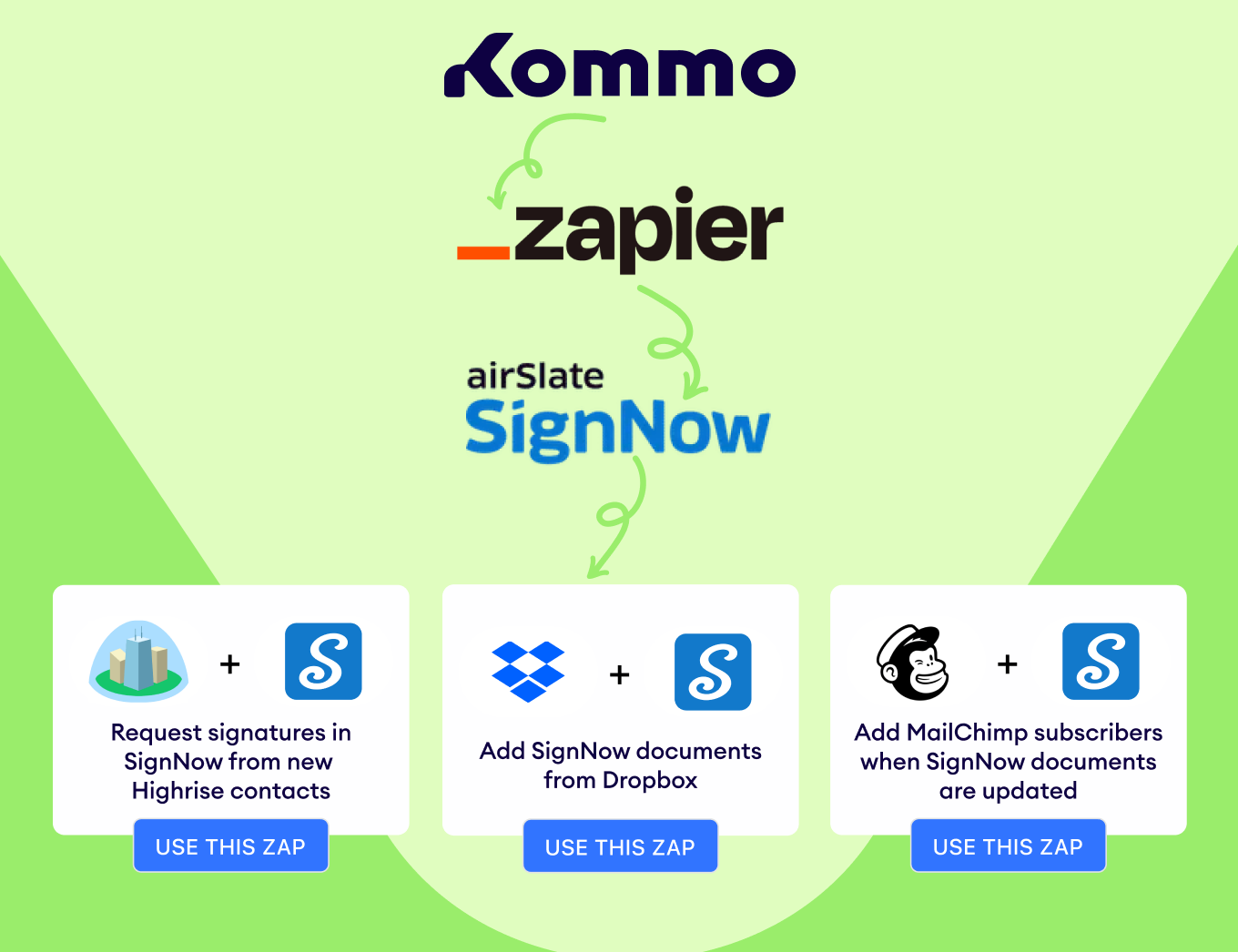 Through the Zapier integration in Kommo, document handling becomes a breeze with tools to create and manage proposals, contracts, and invoices. For example, link SignNow to send contracts for e-signature directly from Kommo, reducing admin work and accelerating the sales cycle.