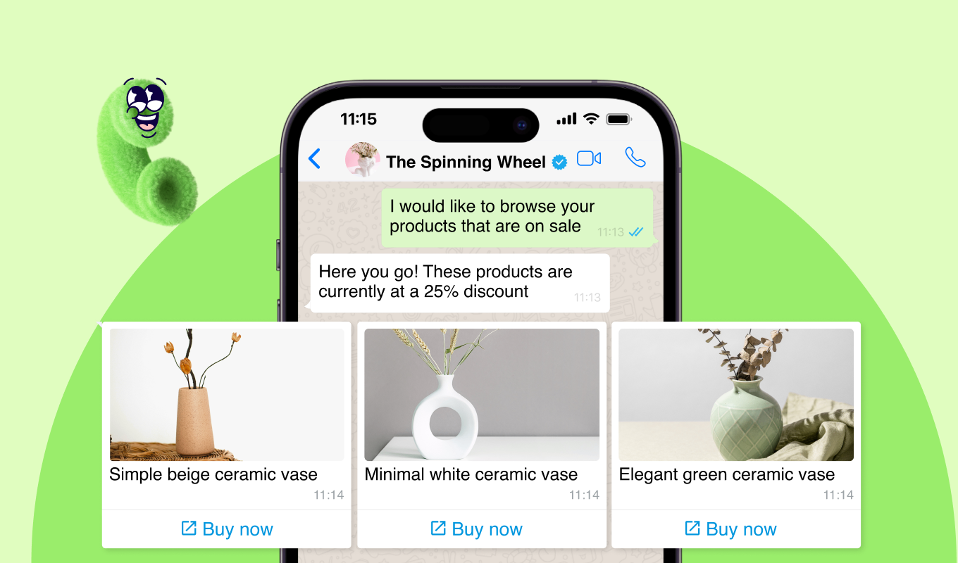 Showcase multiple products, services, or offers with scrollable image cards, right inside your chats, allowing customers to browse and interact with them.