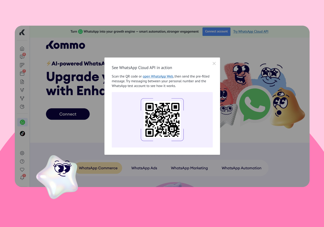 Take the WhatsApp Business integration for a test drive with the QR code Sandbox.