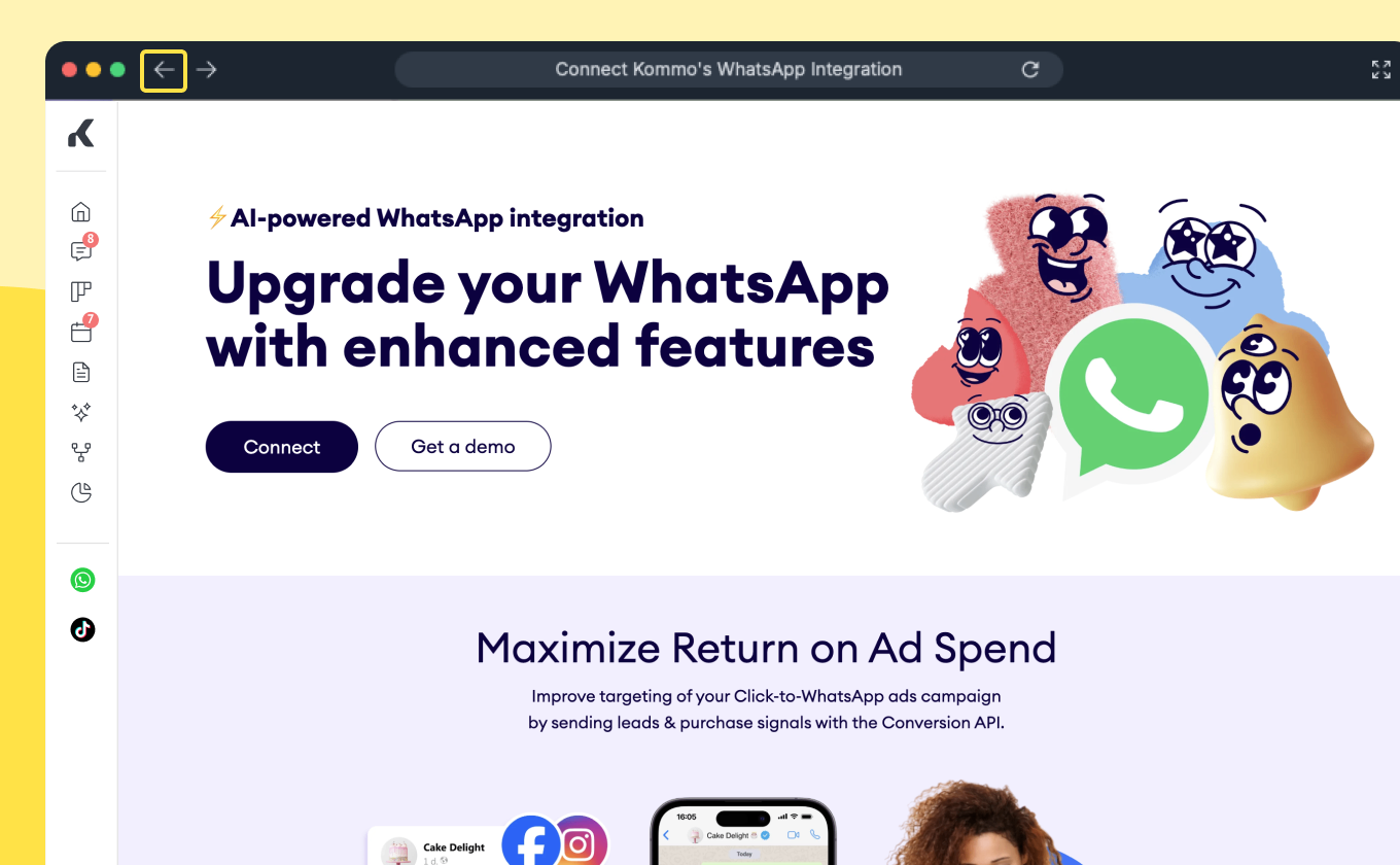 With Kommo’s backend support for Meta’s Conversion API, tracking your Click to message ads on Facebook, Instagram, and WhatsApp got a whole lot smarter 🤓.