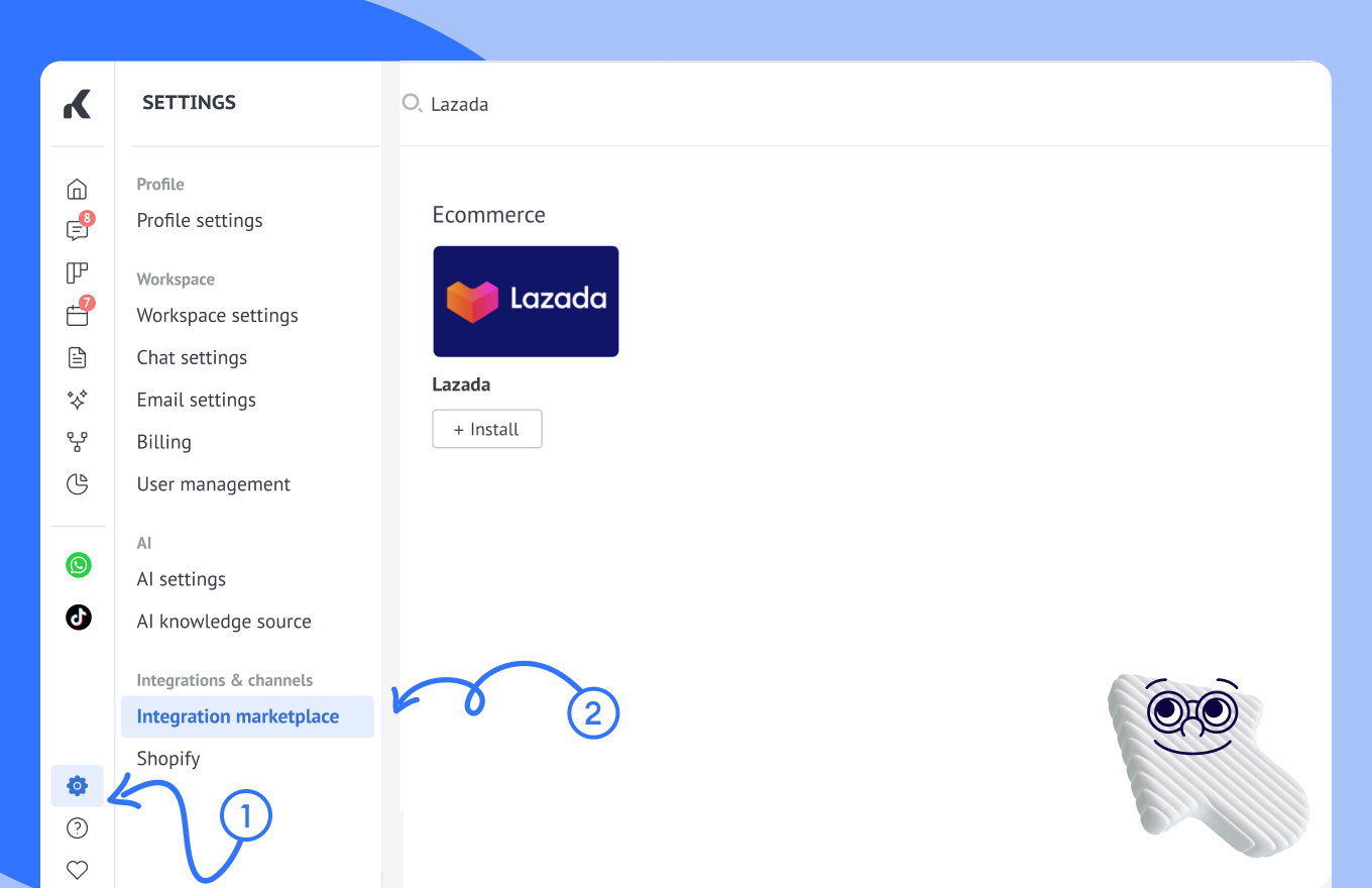 In Kommo, click > Settings> Integrations and search for “Lazada.”