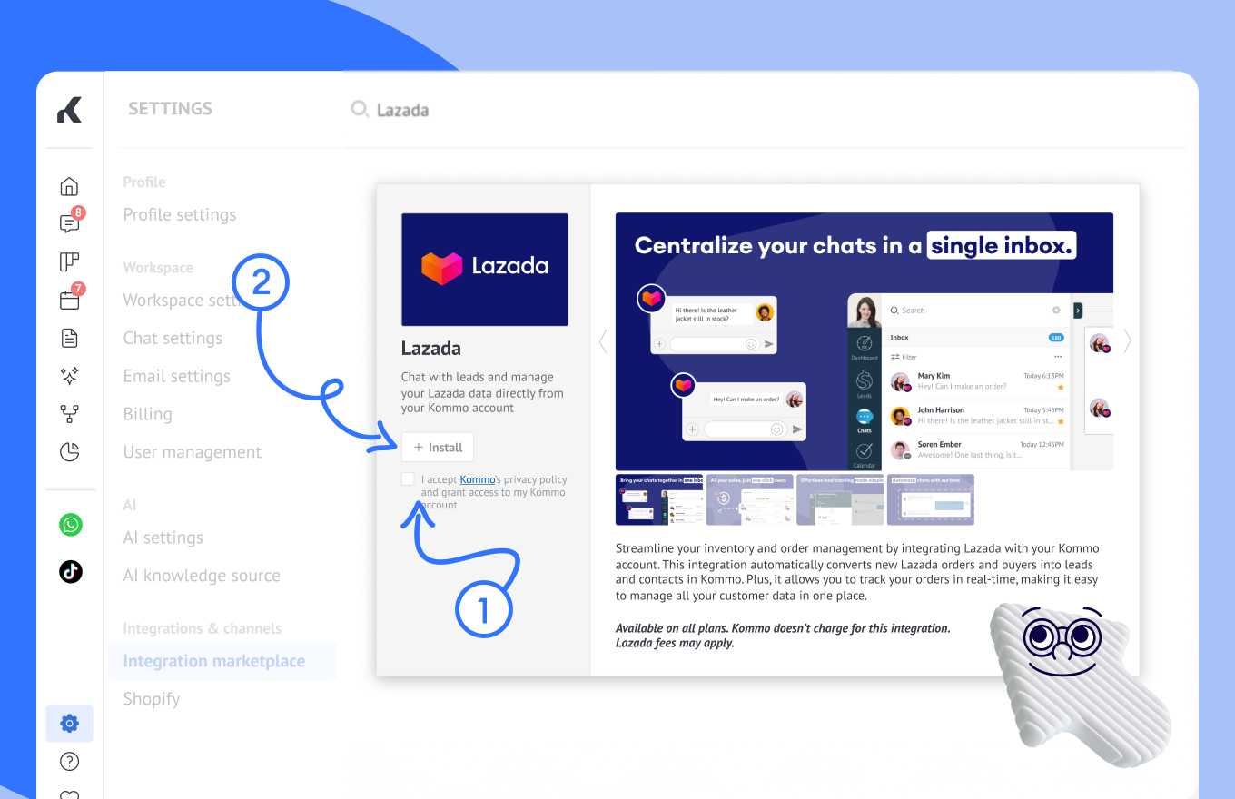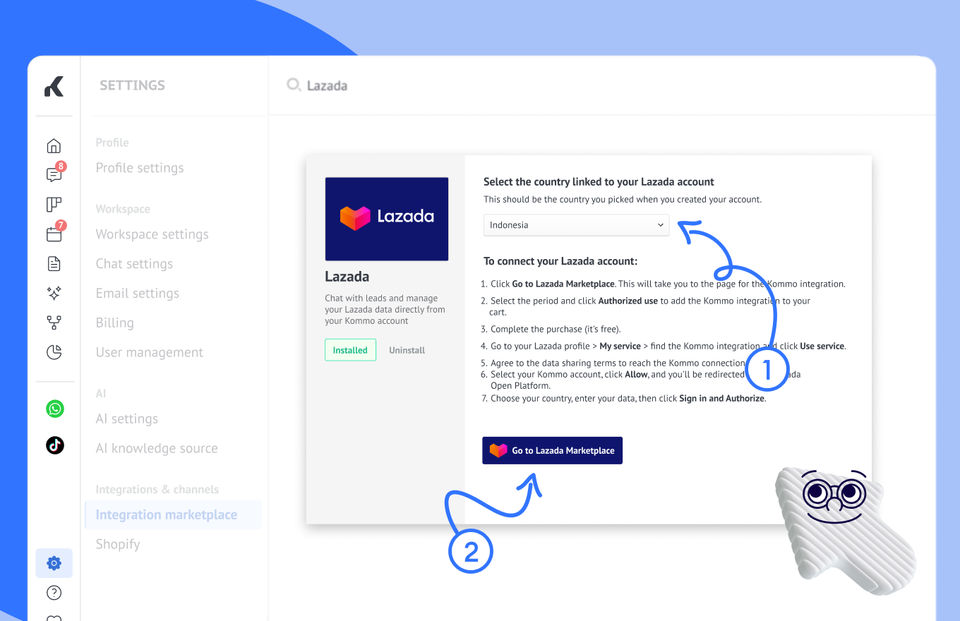 Getting started with Lazada in Kommo is quick and easy. Just follow these 6 simple steps to connect your account: