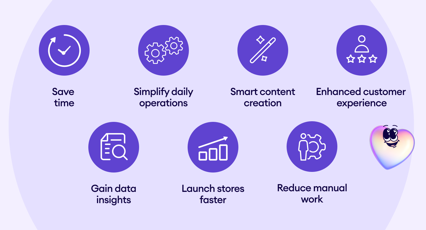 Shopify AI helps sellers save time and simplify e-commerce tasks with built-in automation. Here are some key benefits:
