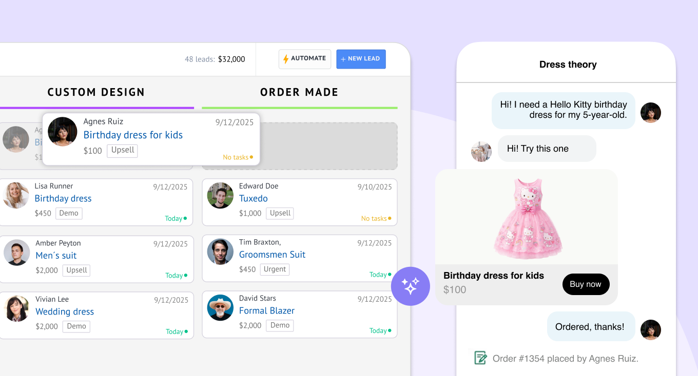 Kommo doesn’t stop at answering questions; it turns Shopify orders into CRM leads, tracks them through a sales pipeline, and triggers actions automatically based on behavior (like abandoned carts, new purchases, or follow-ups).