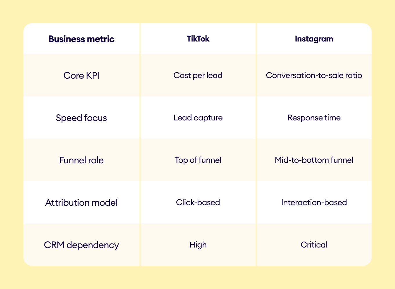 This comparison shows that TikTok and Instagram are not just about different content formats; they support distinct stages of the customer journey, shaping how brands should approach messaging, automation, and engagement.