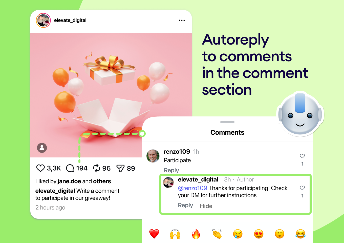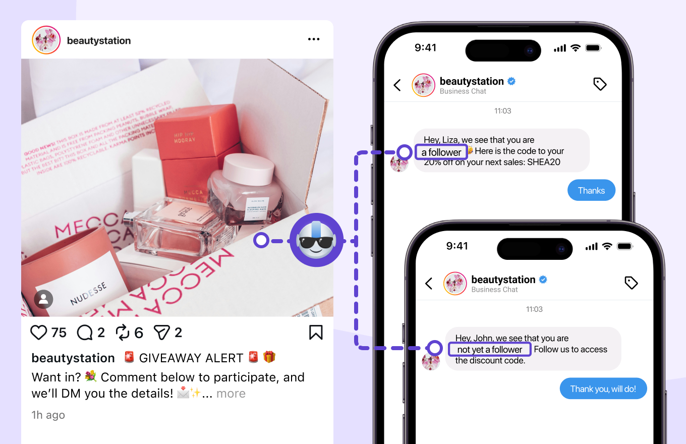 Automatically respond to specific words in comments or direct messages with predefined messages, links, or offers.
