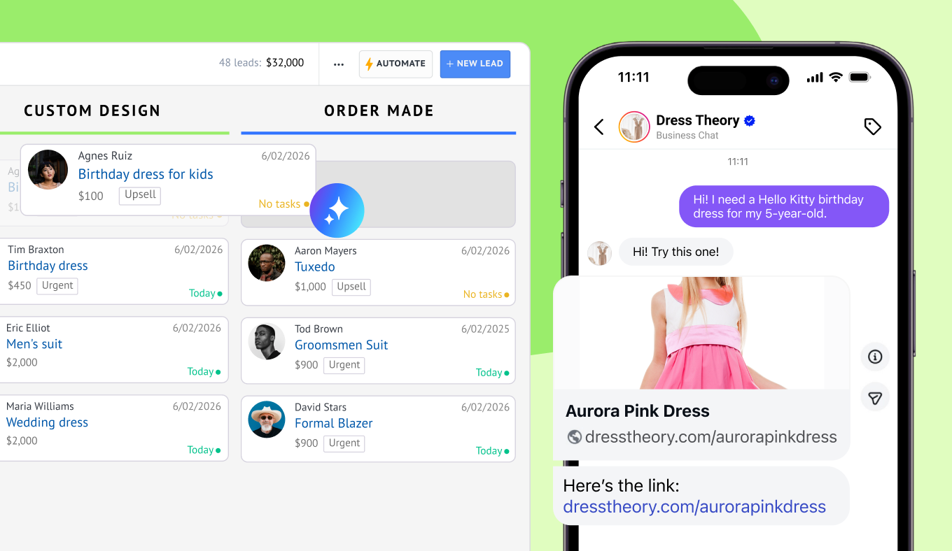 Instant replies, lead qualification, follow-ups, and task automation across both channels.