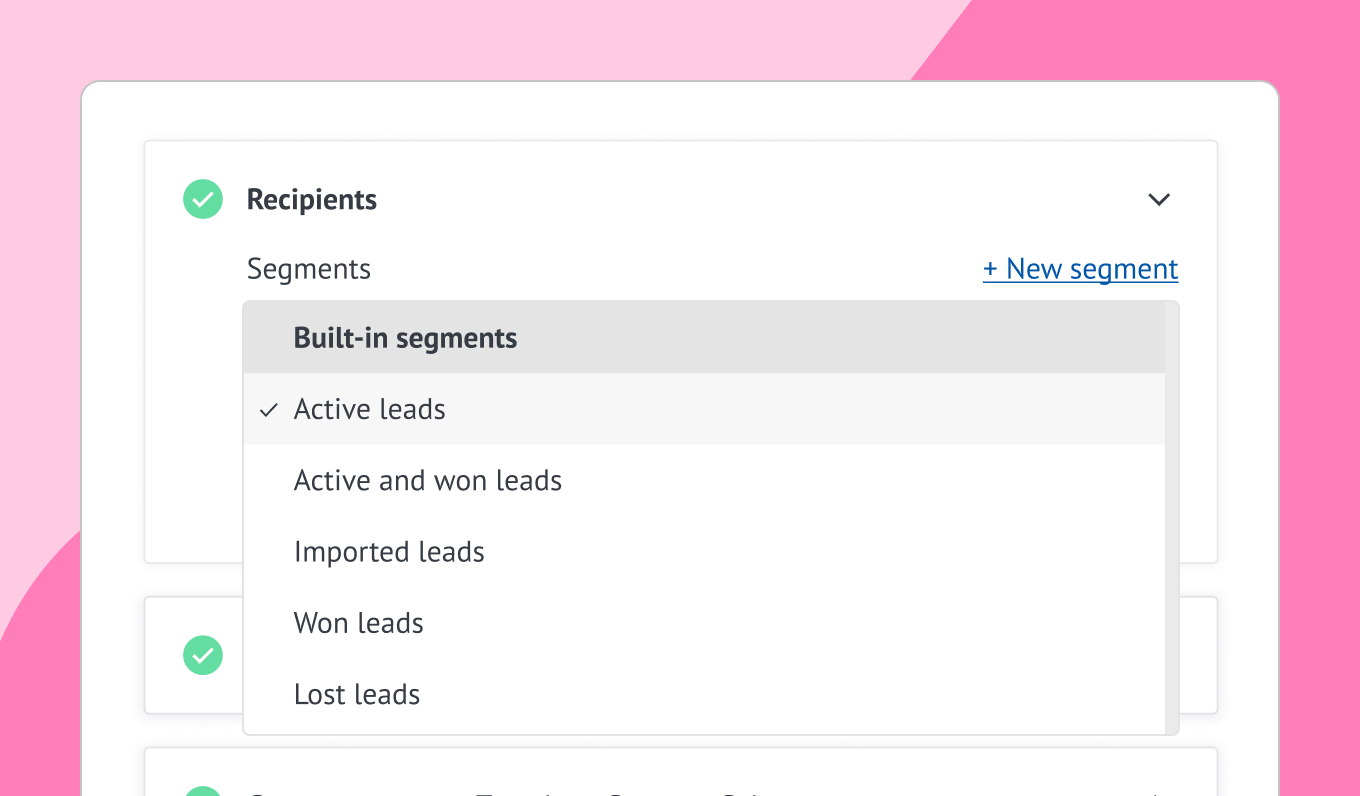 Refine your audience and filter by tags, pipeline stage, or segments.