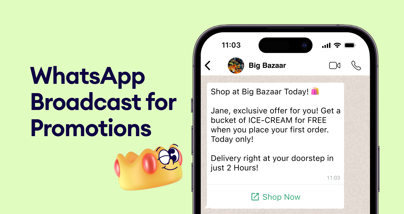 Make your customers feel special by offering them promo codes or limited-time deals made just for them with the help of WhatsApp broadcast.