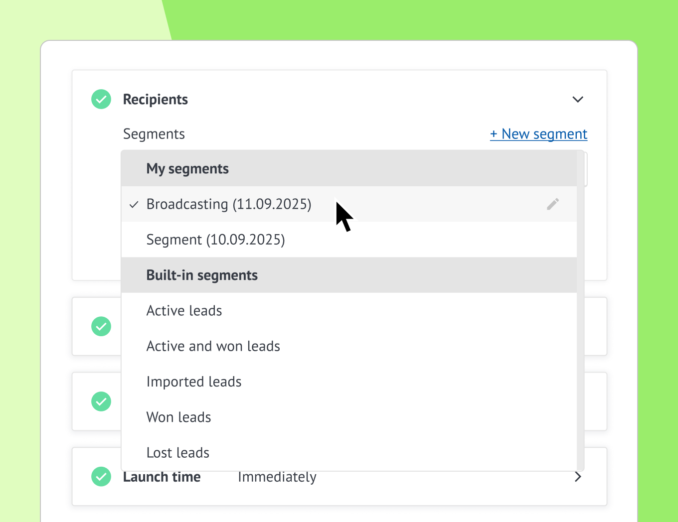 Segments section in the Broadcast builder.