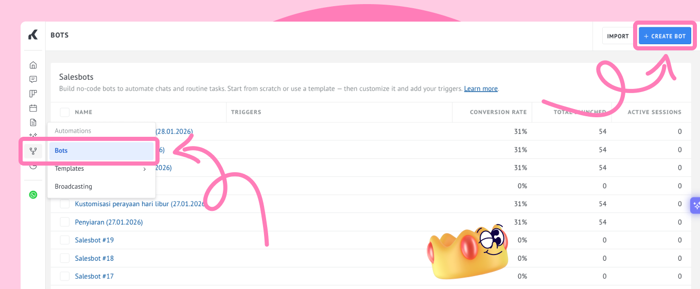 If you're seeking a reliable and powerful WhatsApp CRM with a chatbot builder, Kommo may be the one. 👀