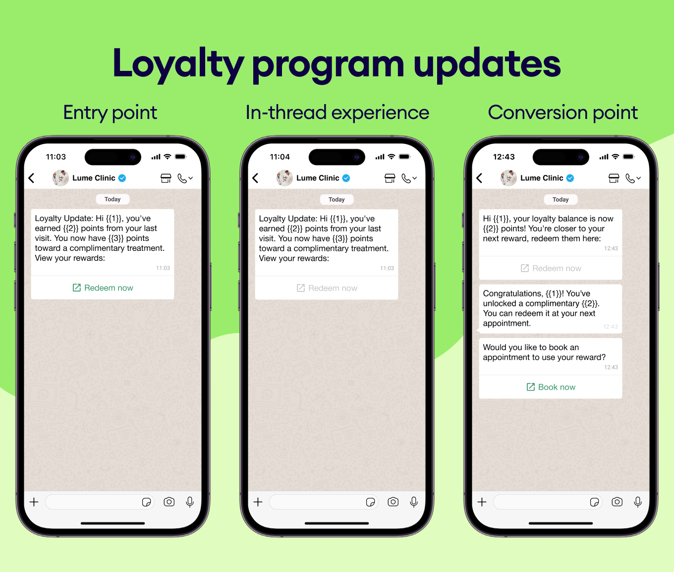 Strengthen your patient relationships with personalized updates on their program benefits, upcoming rewards, and more with WhatsApp message templates.
