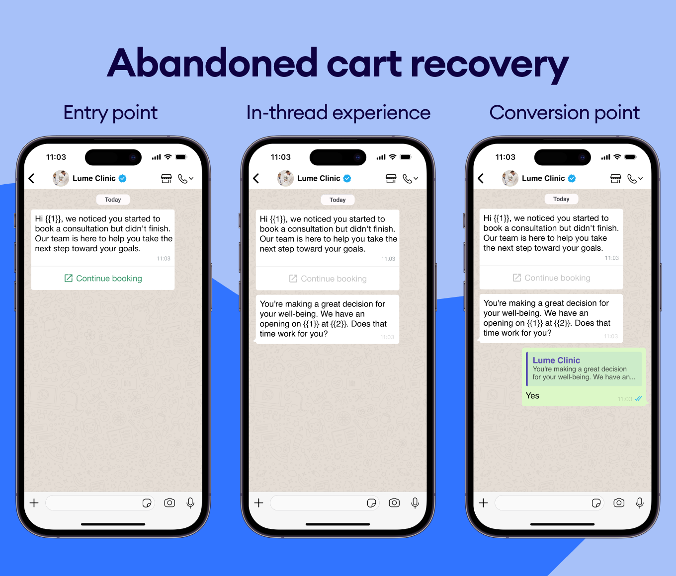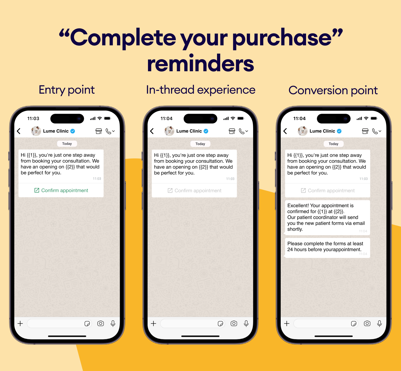 Prompt patients via WhatsApp to finalize their orders with reminder messages.