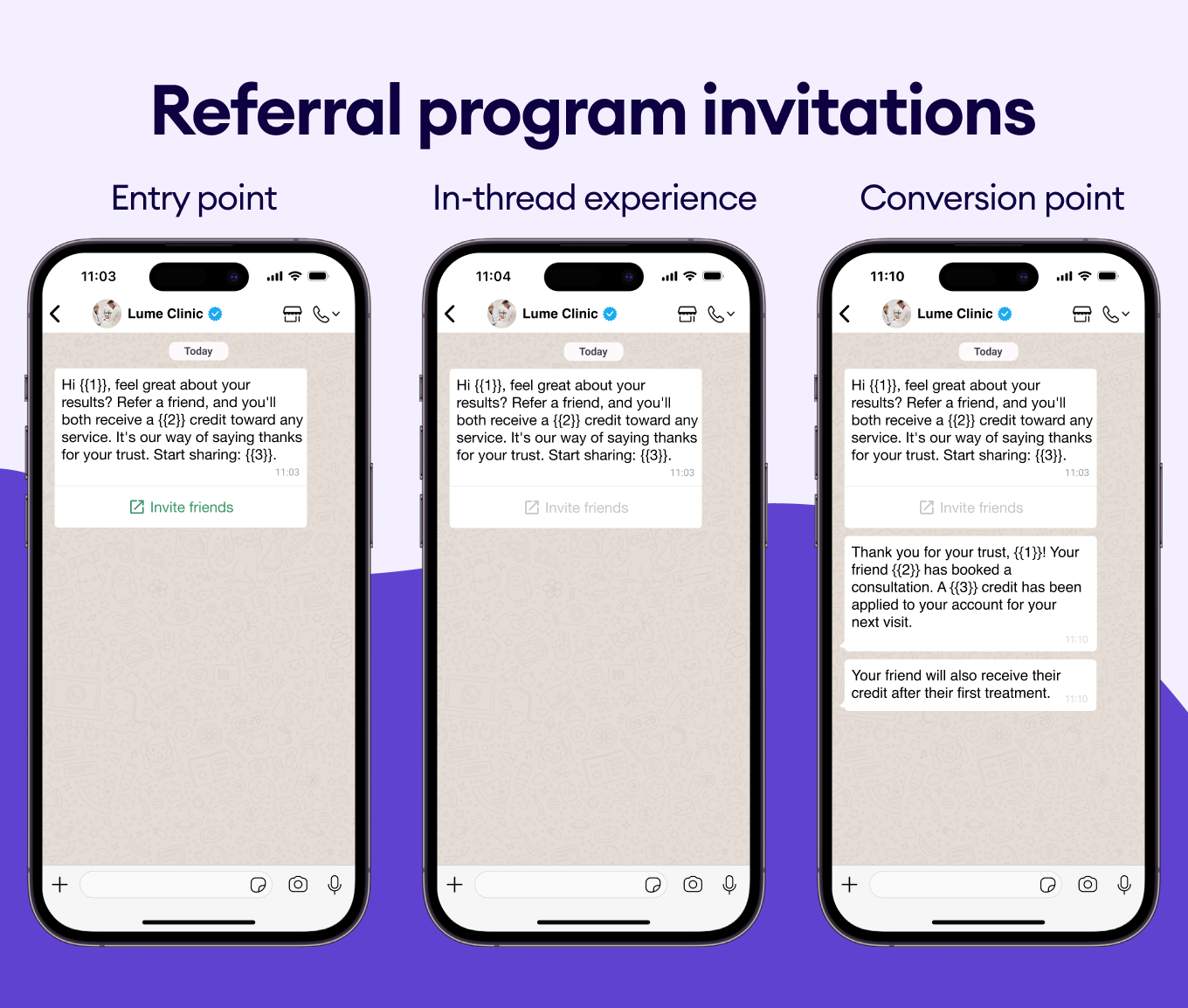 Encourage patients to share and earn rewards with WhatsApp referral invites.