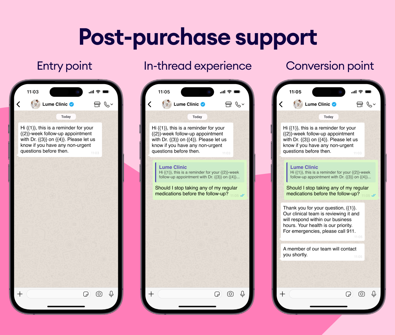 Resolve issues and efficiently guide patients post-procedure with automated WhatsApp support.