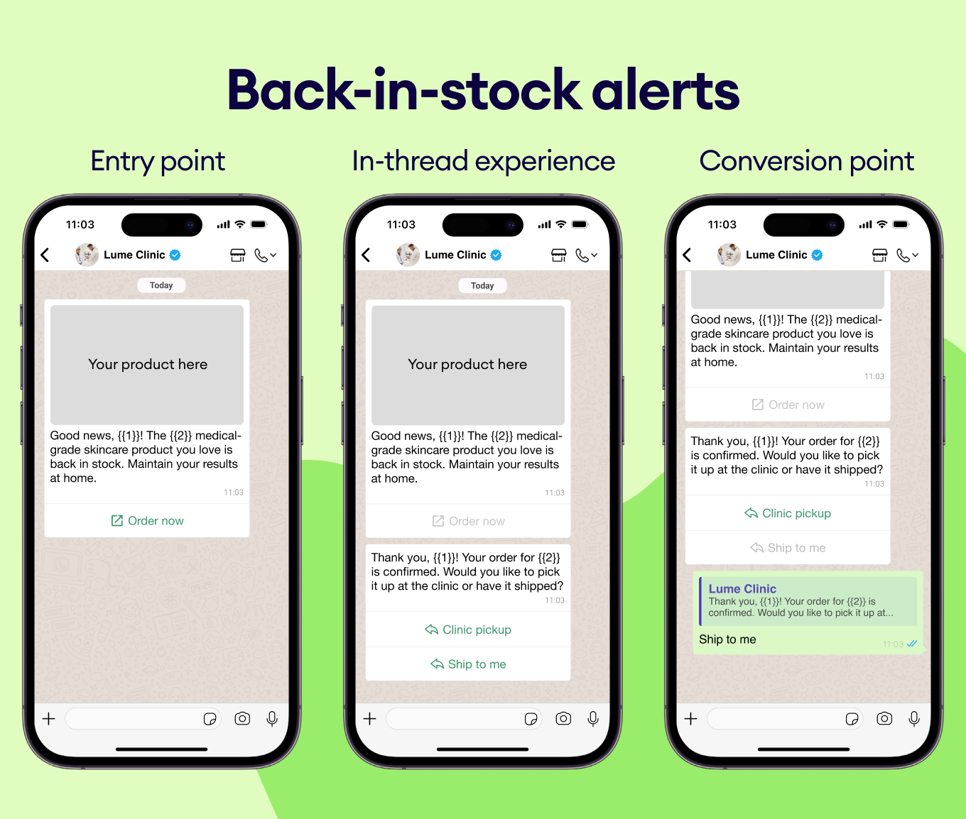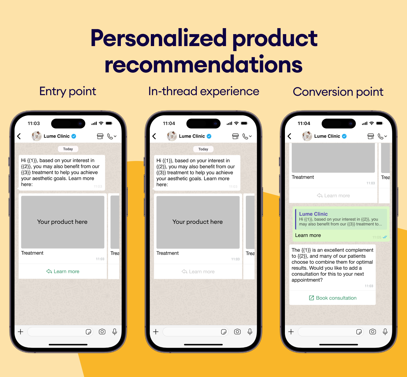 Let clients explore curated options with interactive WhatsApp carousel messages.