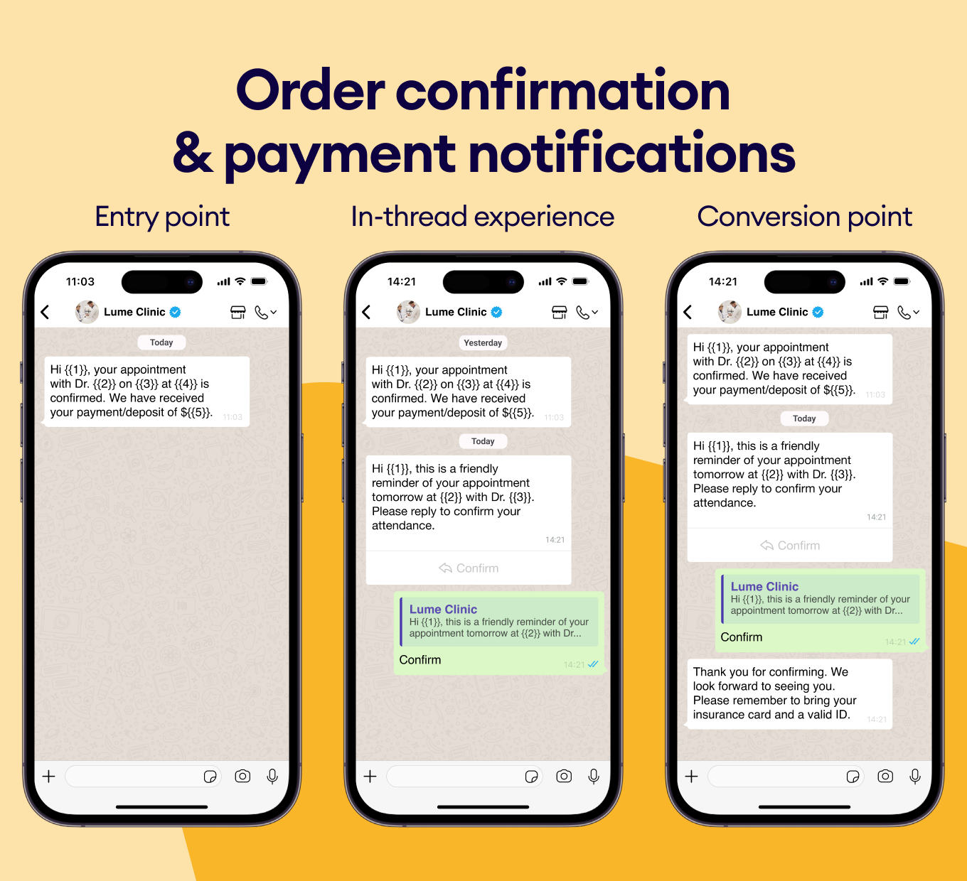 Instantly confirm bookings, acknowledge payment receipt, and keep patients informed with automated WhatsApp template messages.
