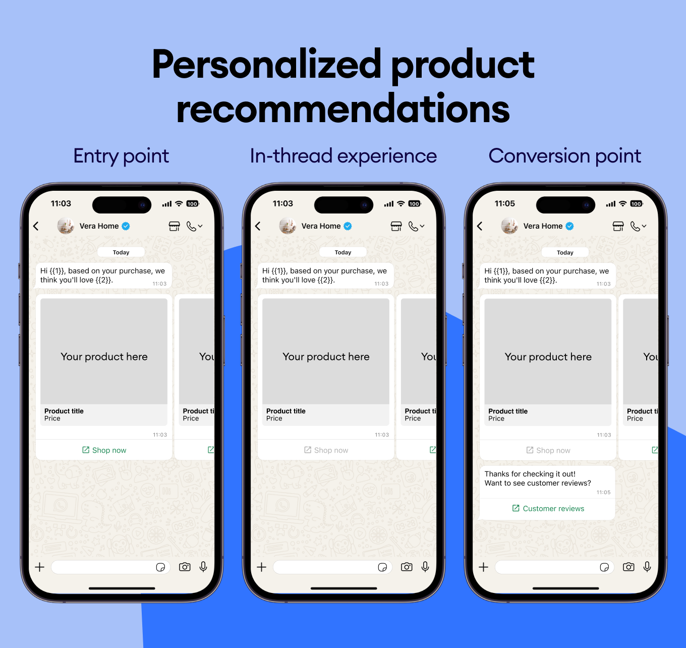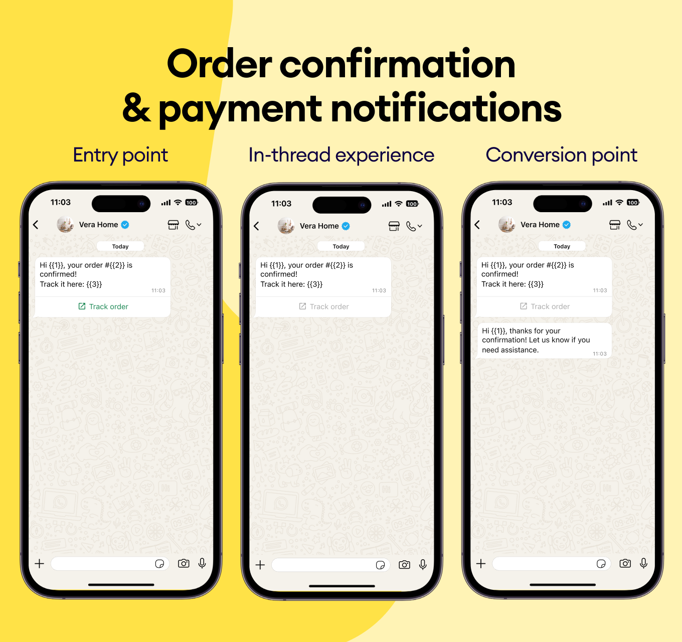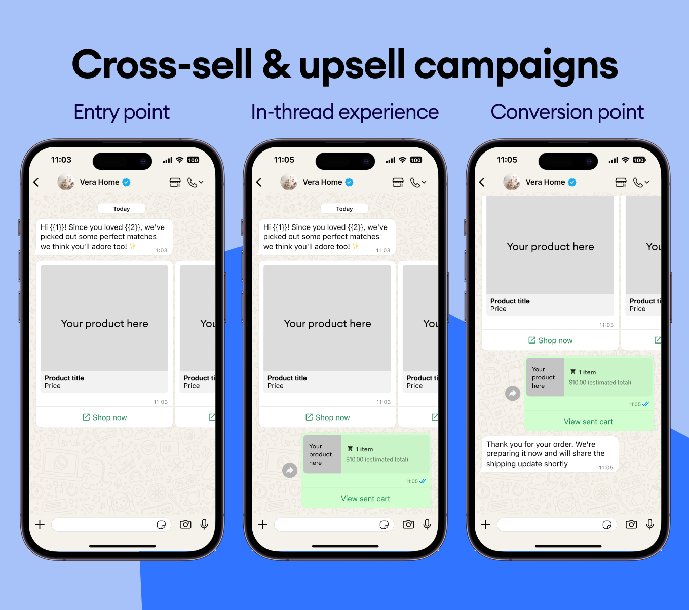 Recommend complementary products and highlight upgrades with WhatsApp templates that instantly enhance the customer experience.