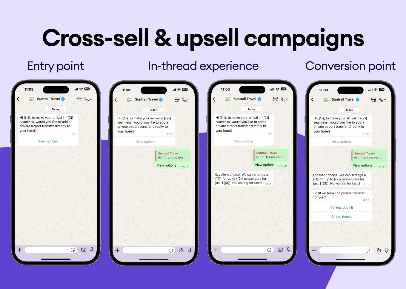 Used your customers' purchase history to suggest new destinations. Send WhatsApp templates like “Loved Bali? You'll be obsessed with Costa Rica” to make sure they choose your business every time.