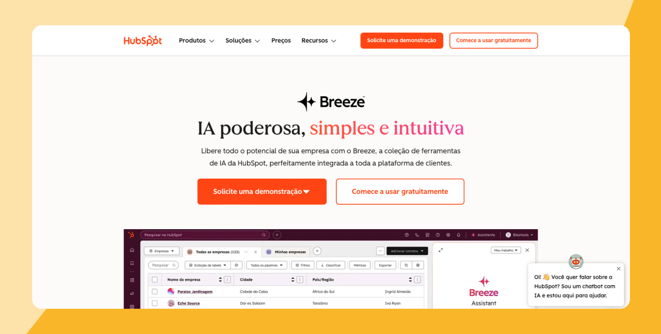 O HubSpot Breeze AI aprimora os fluxos de trabalho de CRM com automação e insights orientados por IA, principalmente para dar suporte à prospecção e à gestão de negócios.