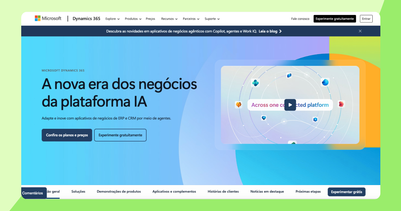 O Microsoft Dynamics 365 Sales utiliza IA para dar suporte à qualificação, pesquisa e gerenciamento de funil dentro do ecossistema Microsoft.