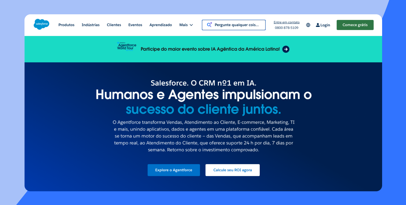 O Agentforce Sales (anteriormente Sales Cloud) integra agentes de IA que podem executar tarefas comerciais complexas de forma autônoma.