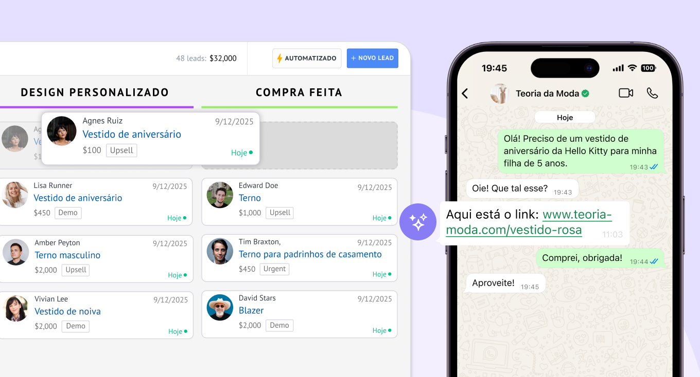 Com um chatbot integrado e um agente de IA, a Kommo ajuda as equipes a migrarem de respostas reativas para um engajamento inteligente e contextualizado com o cliente, mantendo as áreas de vendas, suporte e marketing perfeitamente alinhadas.