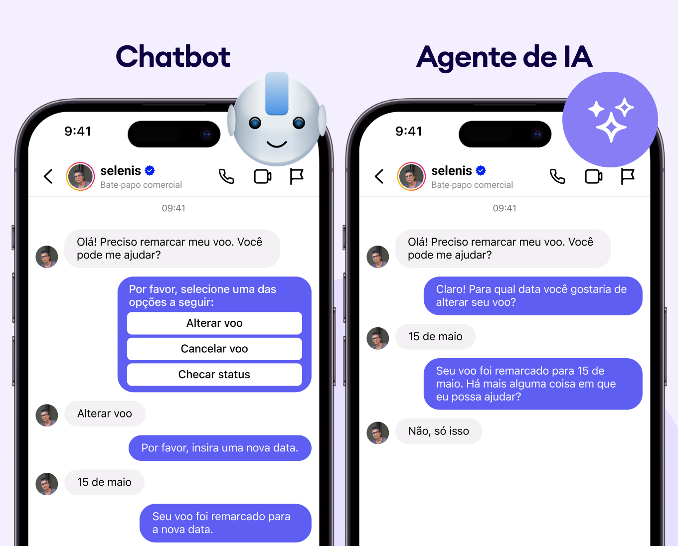 Essa comparação destaca por que escolher entre um Agente de IA e chatbot depende da complexidade das suas conversas e dos seus objetivos de negócio.