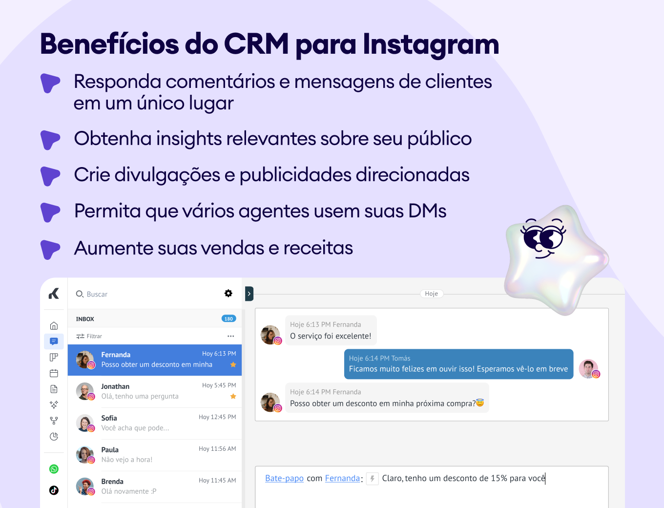 CRM para Instagram é uma ferramenta que gerencia o relacionamento com o cliente (em inglês, Customer Relationship Management, por isso CRM), totalmente integrada ao Instagram.📱