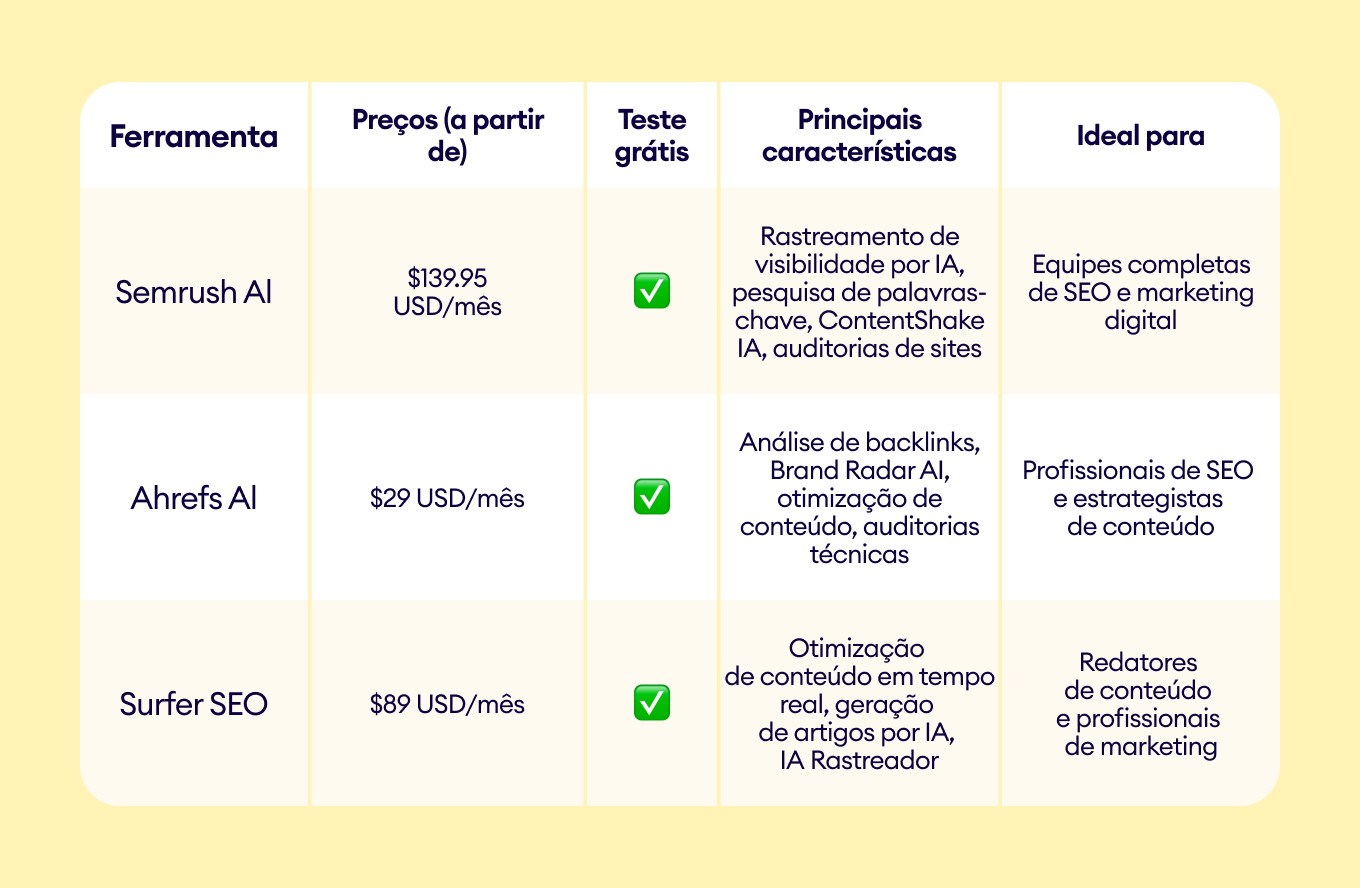 Tabela comparativa: Ferramentas de marketing com IA para pequenas empresas
