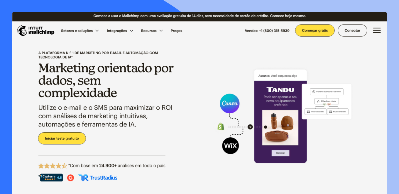 O Mailchimp é a escolha ideal para pequenas e médias empresas que precisam de uma plataforma confiável e fácil de usar, com inteligência artificial suficiente para competir com equipes de marketing muito maiores.