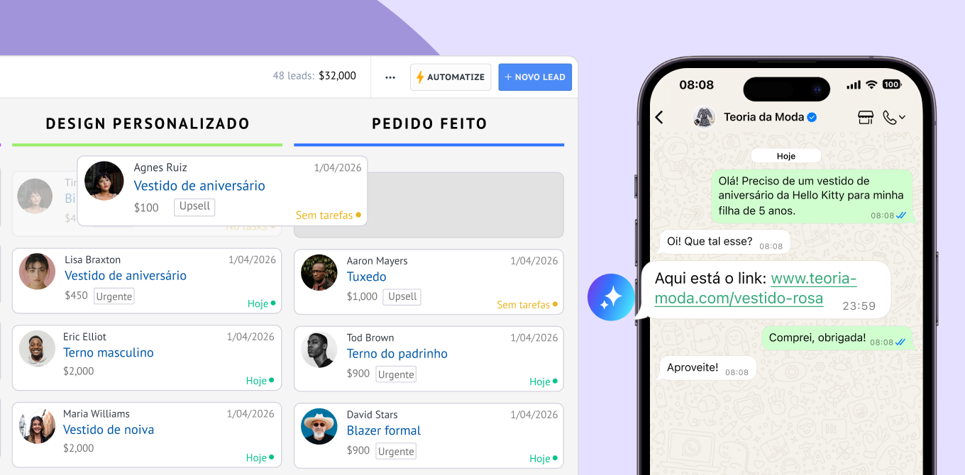 - Qualifique leads e conduza-os automaticamente pelo seu funil de vendas visual com base nos dados da conversa.