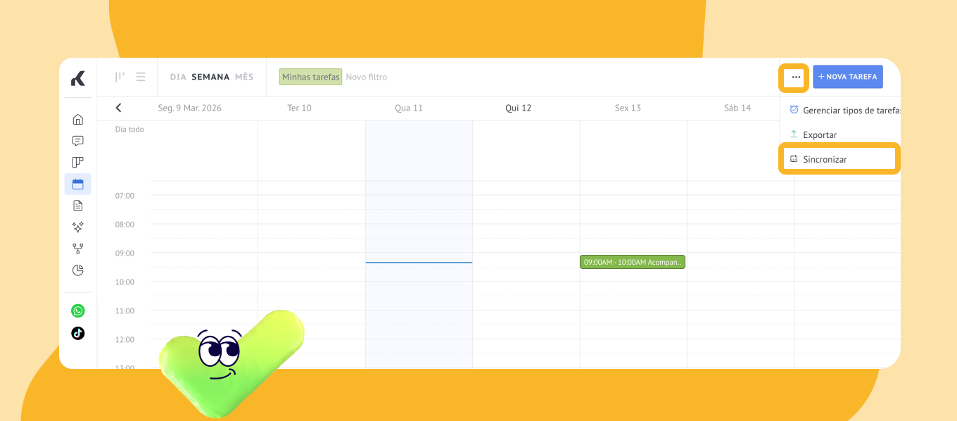 Acesse a seção Calendário na barra de menu do lado esquerdo e clique em Sincronizar no canto superior direito.