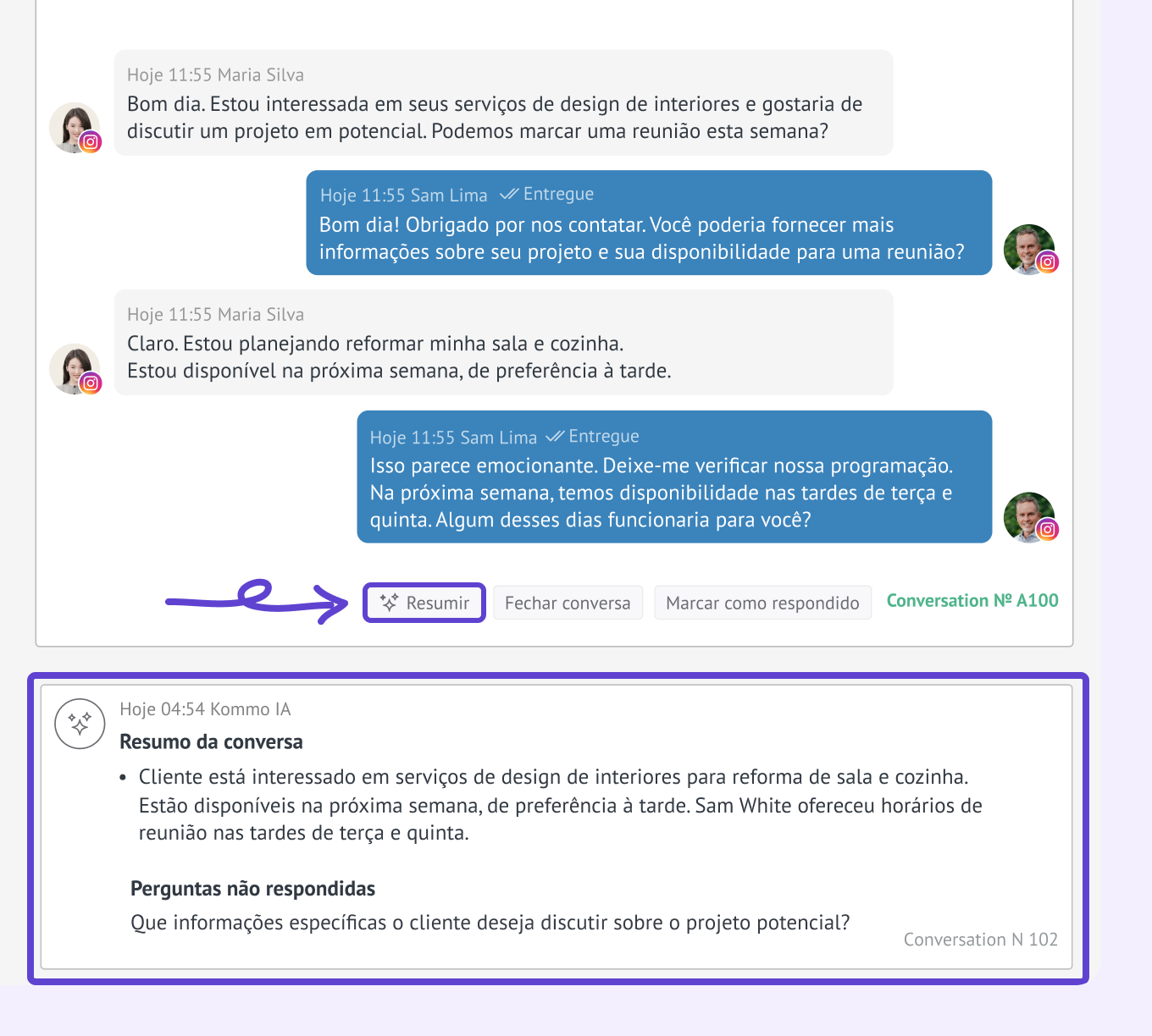 Recurso de resumo da conversa.