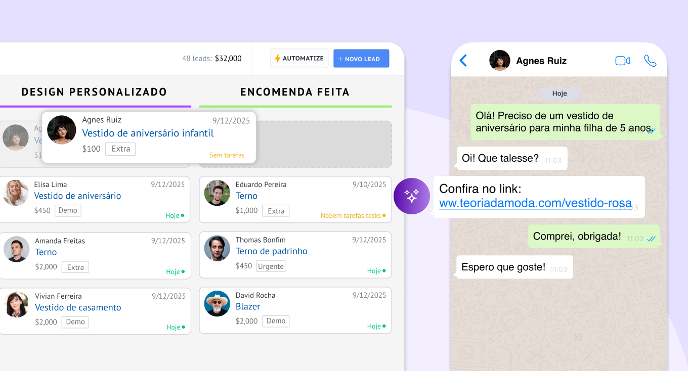 Enquanto isso, a equipe de vendas tem visibilidade completa da jornada do lead, permitindo que ela intervenha no momento certo e feche o negócio com eficiência. Esse fluxo de trabalho combina inteligência artificial com automação de CRM para transformar engajamento em receita mensurável.