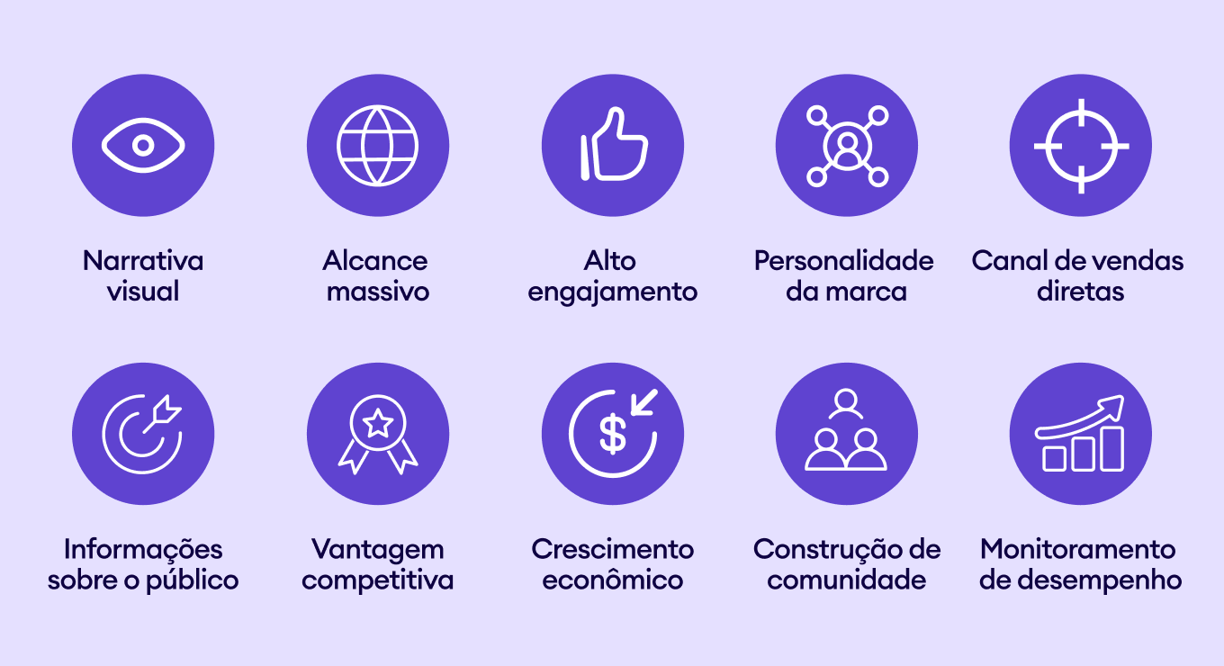 Descoberta e geração de leads: 62,7% dos usuários que interagem com marcas ou pesquisam produtos na plataforma a torna um fator chave para a geração de leads.