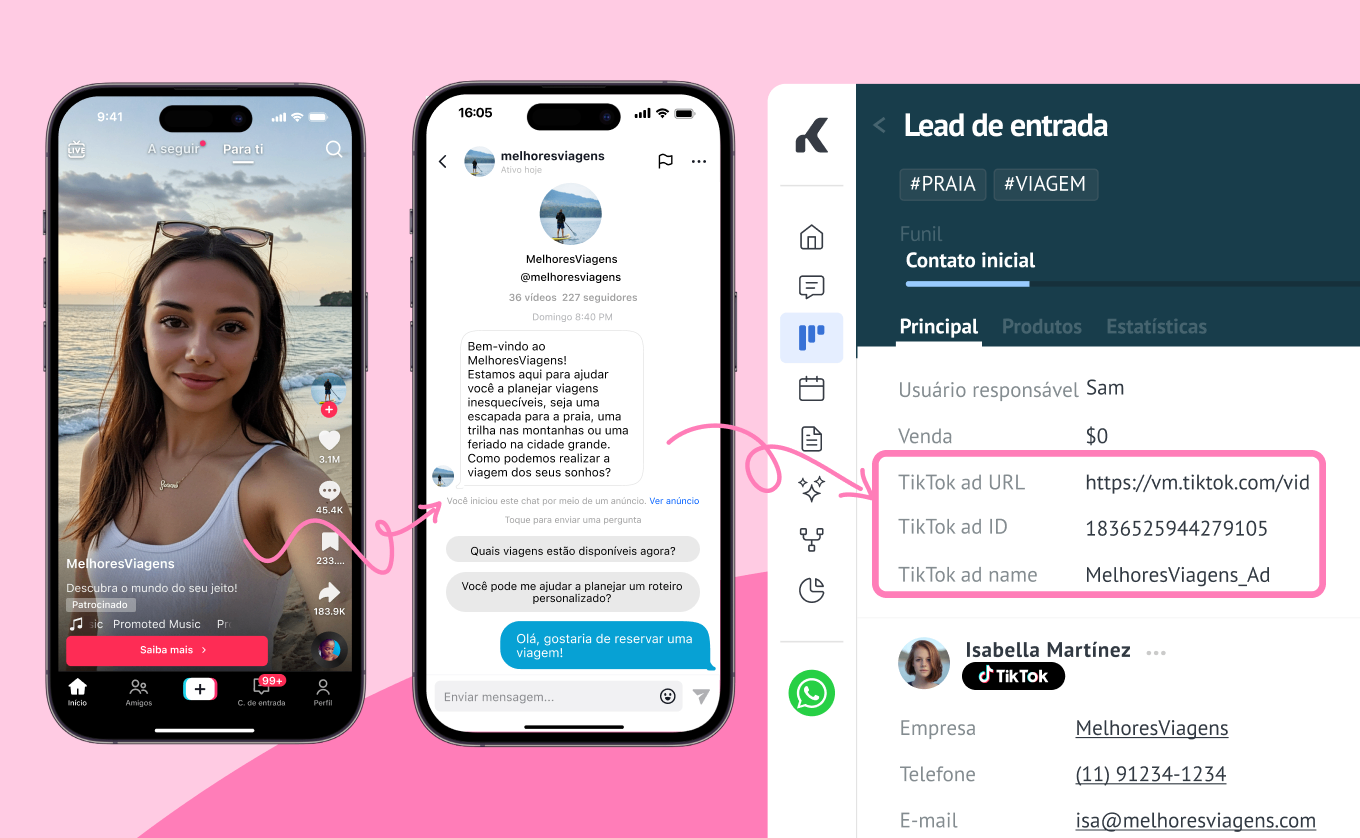 📍Observação: Leia tudo sobre como o Kommo aprimora seu uso do TikTok em nosso artigo TikTok+Kommo.